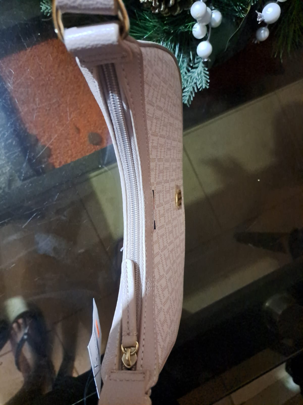 Cartera baguette rosa con detalles rosa monogravados y con hebilla al costado, cuenta con cierre sin bolsillos interiores, perfecta para tus looks diarios ✨