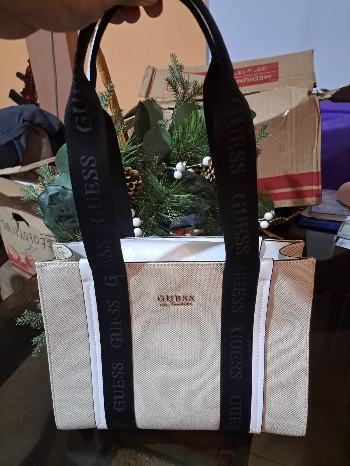 Bolso Carryall GUESS Beige doble asa negro