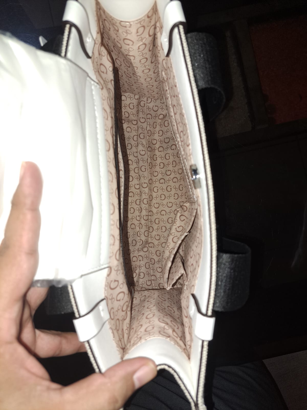 Tiene un bolsillo interno espacioso en la insignia Guess y 3 bolsillos internos en el forro delantero para celular, labiales, los que te permitirán guardar aquellos objetos más pequeños o imprescindibles evitando que se mezclen con los demás y extravíen.
