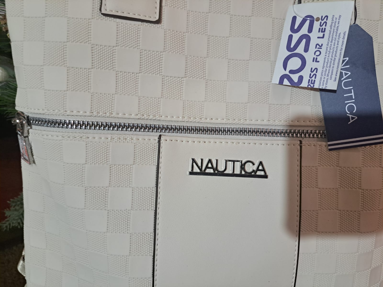 • Material: fabricada en PVC/PU (Poliuretano). Estos materiales son duraderos, fáciles de limpiar y resistentes al uso diario y son comunes en las líneas de accesorios de Nautica. El relieve en cuadros añade una dimensión táctil y visual. El interior está totalmente forrado en tela de poliéster al igual que el bolsillo exterior.